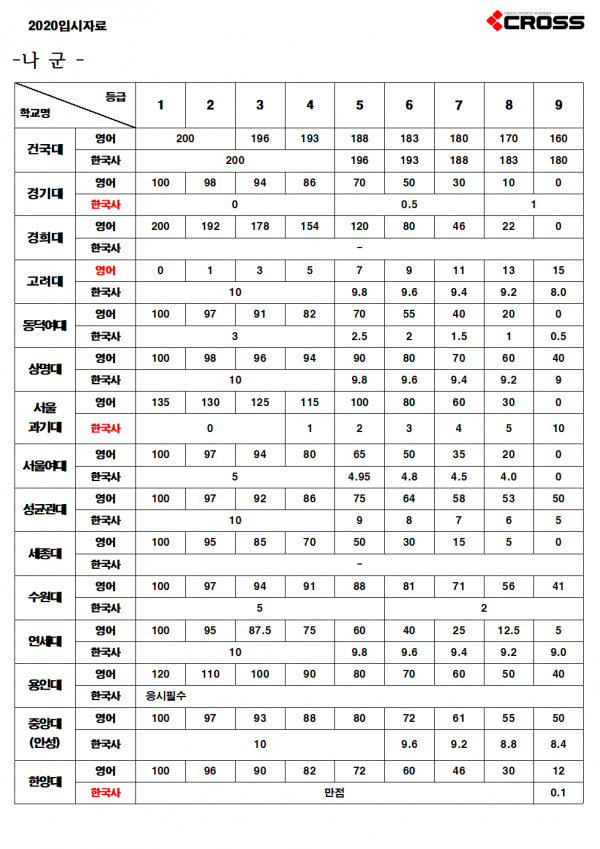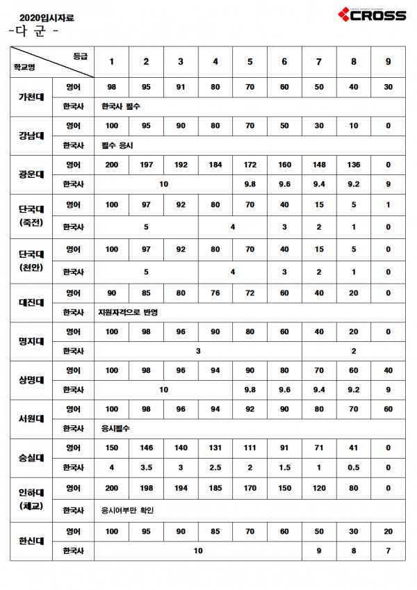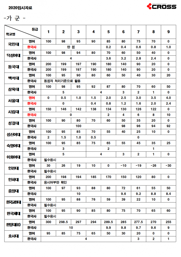 [2021 입시] 정시 영어 및 한국사 반영점수