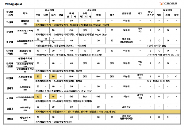 [2024 입시] 정시 다군 주요대학 요약