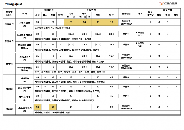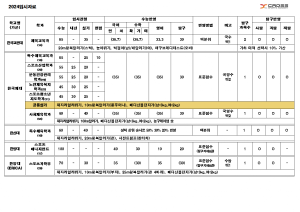 [2024 입시] 정시 가군 주요대학 요약