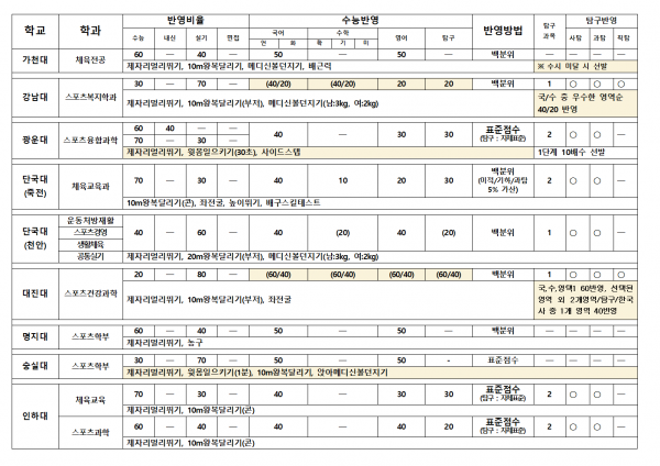 대한민국 체대입시의 표준