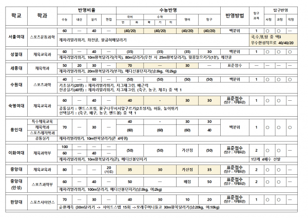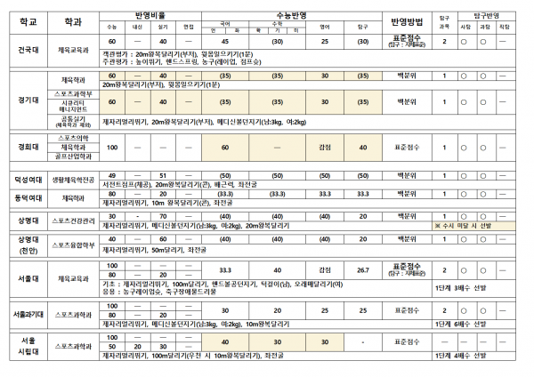 대한민국 체대입시의 표준