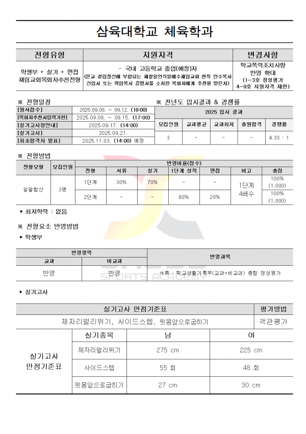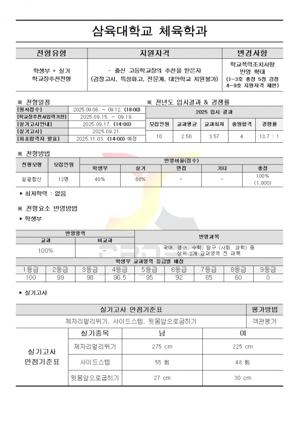 대한민국 체대입시의 표준