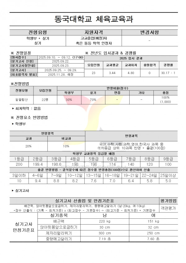 대한민국 체대입시의 표준