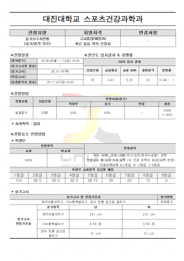2026학년도 대진대학교 수시모집요강