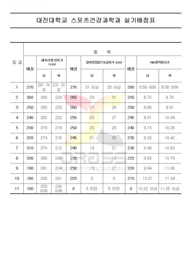 대한민국 체대입시의 표준
