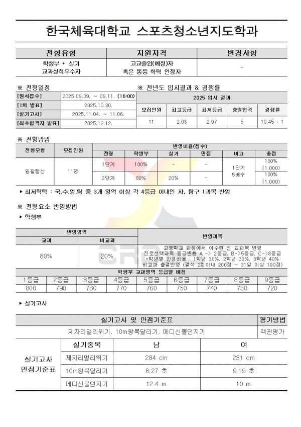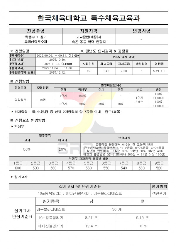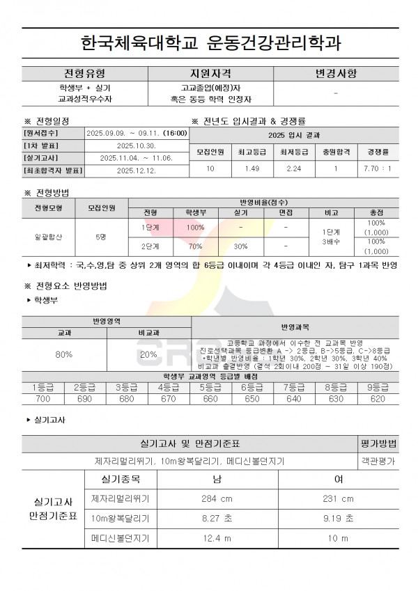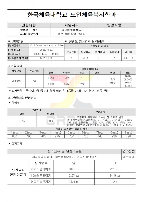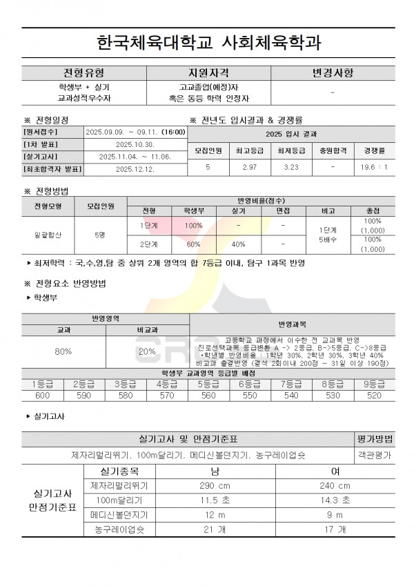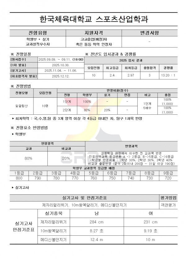 2026학년도 한국체육대학교 수시모집요강