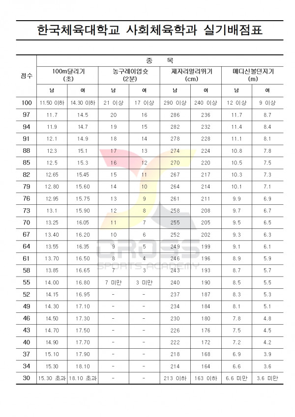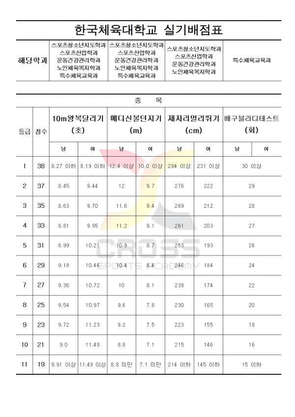 대한민국 체대입시의 표준